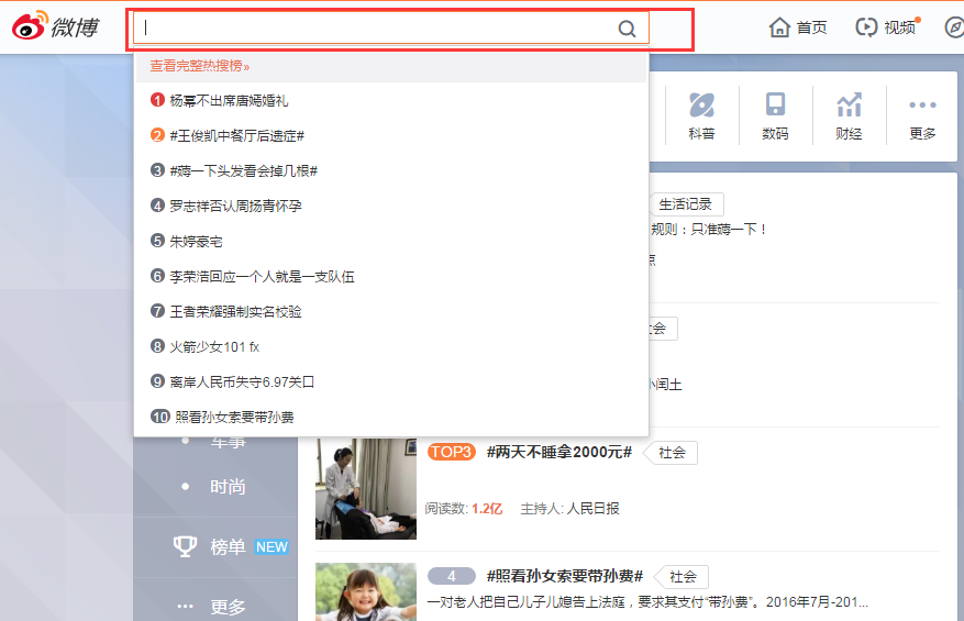 微博另一大熱點集中地就是微博熱搜,把鼠標放在微博搜索框內,下面就會出現熱搜榜,點擊查看完整熱搜榜單。微博熱搜榜是大、主要、快速的熱點來源地。