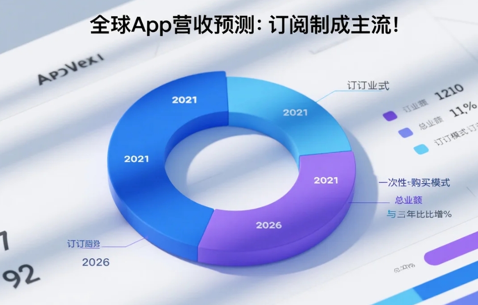 根據Sensor Tower和Statista的最新數據,2025年全球移動應用營收預計突破2700億美元,較2021年增長近70%。這一App營收預測的核心驅動力已發生根本轉變:App訂閱制取代一次性付費和內購,成為收入增長的絕對引擎,預計貢獻超60%的份額。